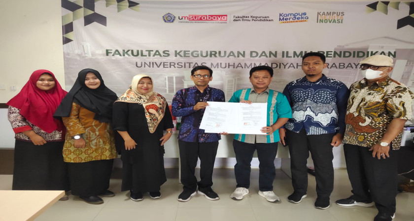 SURABAYA, Kamis 28 Desember 2023 - Bertempat di ruang Dekanat Lantai 3 Gedung At-Tauhid Tower Universitas Muhammadiyah Surabaya (UMSurabaya) Fakultas Keguruan dan Ilmu Pendidikan (FKIP) UMSurabaya dengan SMP Muhammadiyah 1 Sampang sepakati dan penandatangan surat perjanjian kerjasama dilakukan langsung oleh Dekan FKIP UMSurabaya Dr. Ratno Abidin, S.Pd.,M.Pd. dengan Akh. Maulidi, S. T., M.T. selaku Kepala Sekolah.